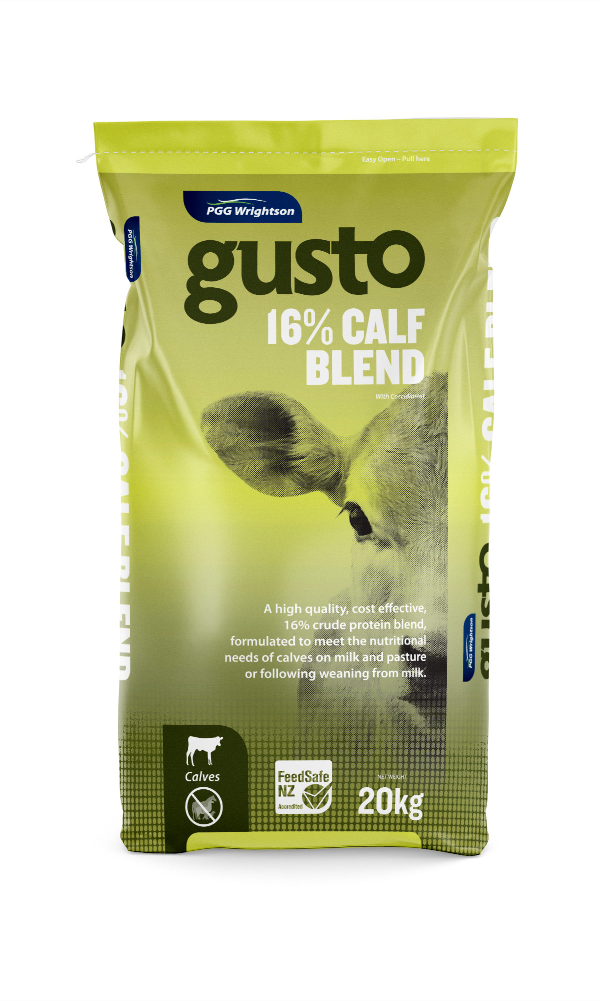 Download North Island PDF Shop Now at PGG WrightsonGusto 16% Calf Pellets delivers superior quality, nutritionally balanced meal catering for the energy, protein (16%), mineral and vitamin requirements of older calves, or calves/heifers heavier than 80-100kg liveweight, particularly through and after weaning.* South Island Only